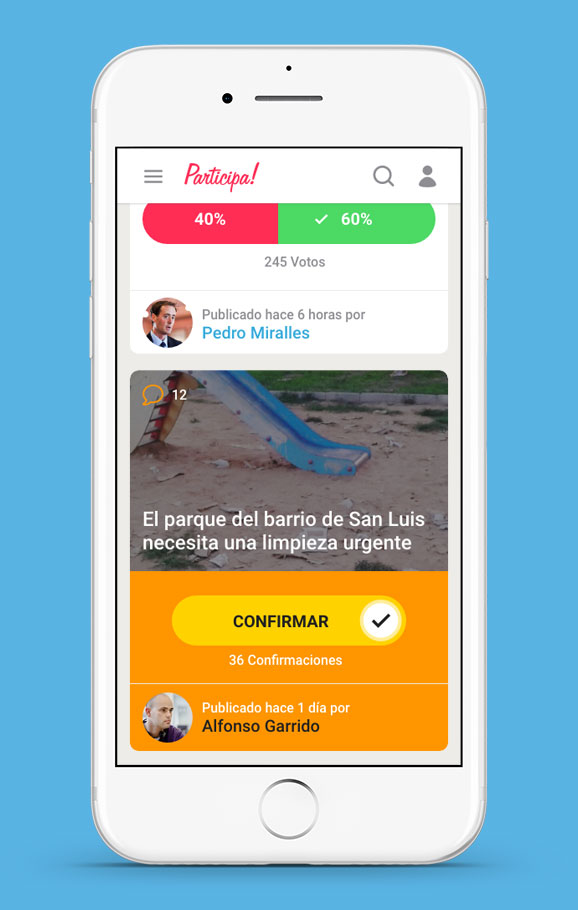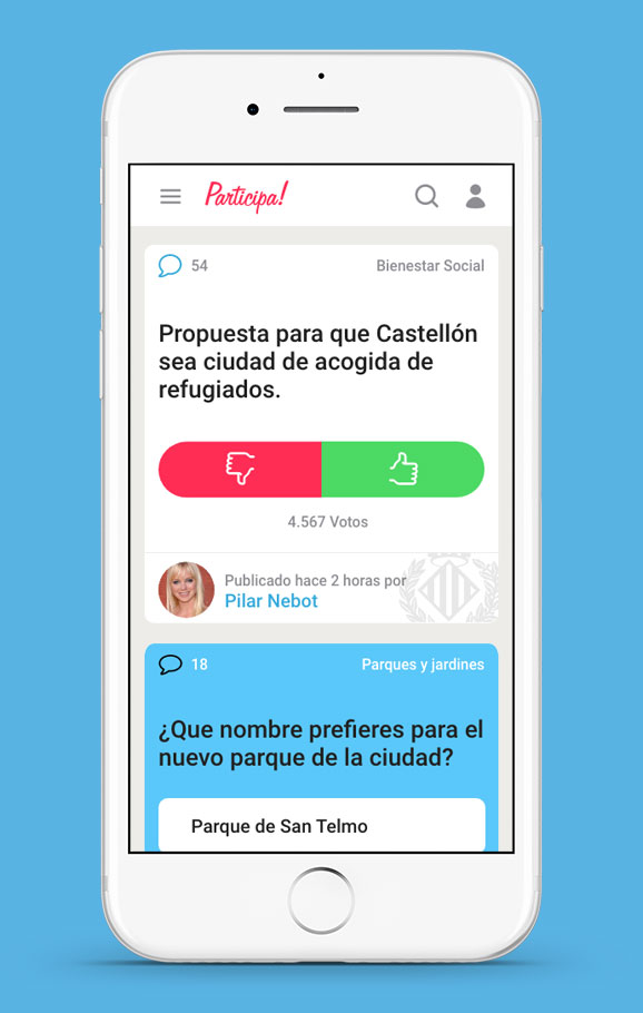 La aplicación Participa! es un proyecto pensado para agilizar procesos que, por su naturaleza burocrática, son lentos y complicados. Queremos que todo el mundo pueda expresar su opinión.